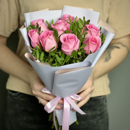 Купить букет из 9 розовых кенийских роз в Тромсе